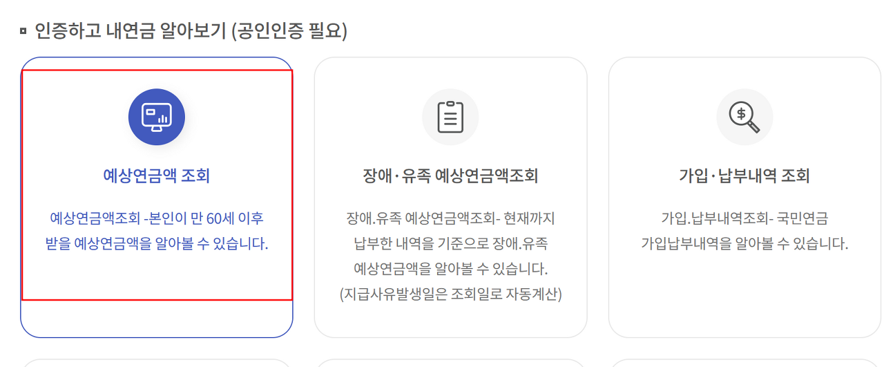 예상 국민연금액 확인하기