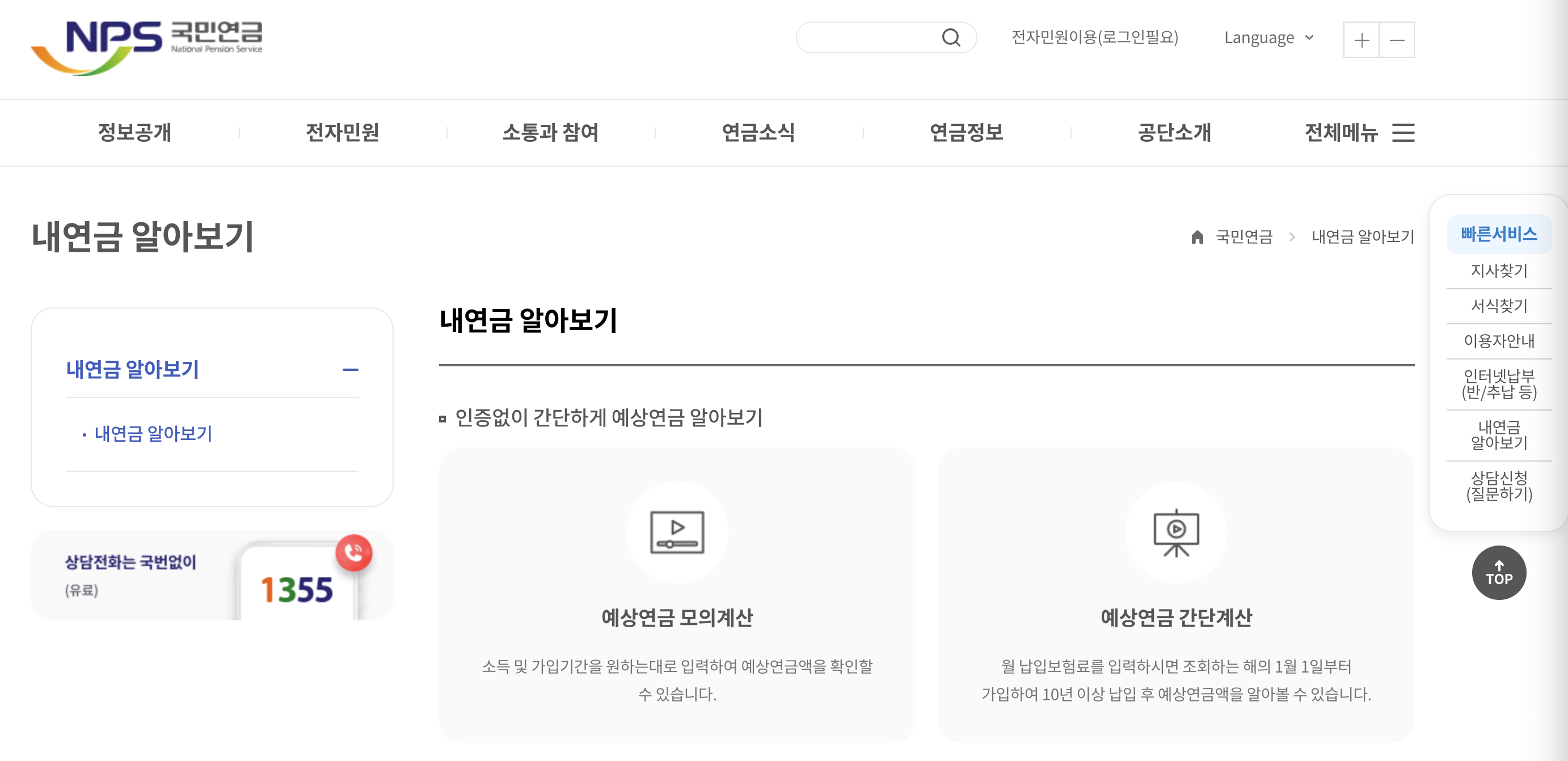 - 예상 국민연금액 확인: 공인 인증을 통한 정확한 예상 국민연금액을 확인할 수 있습니다.