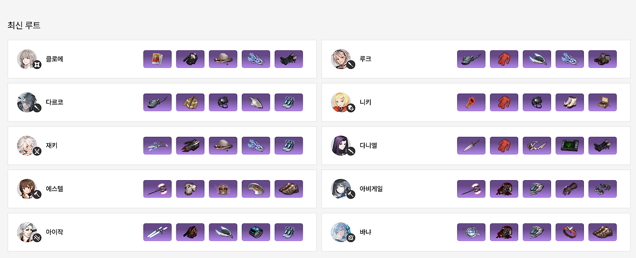 가장 많이 선택된 캐릭터와 그에 따른 빌드를 확인할 수 있습니다. 이를 통해 최신 메타를 파악하고, 자신의 플레이 스타일에 맞는 캐릭터를 선택할 수 있습니다.