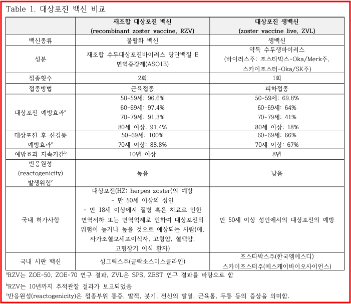 대상포진 예방접종 종류