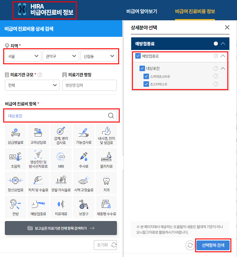 대상포진 예방접종 가격은 건강보험심사평가원에서 조회할 수 있습니다. 로그인이나 개인정보확인이 필요하지 않아 손쉽게 조회 가능합니다.