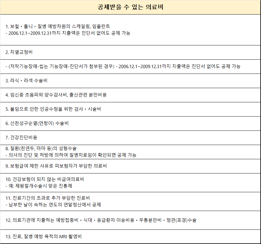 - 비급여 항목에 대한 지출도 일부 공제 대상일 수 있습니다.