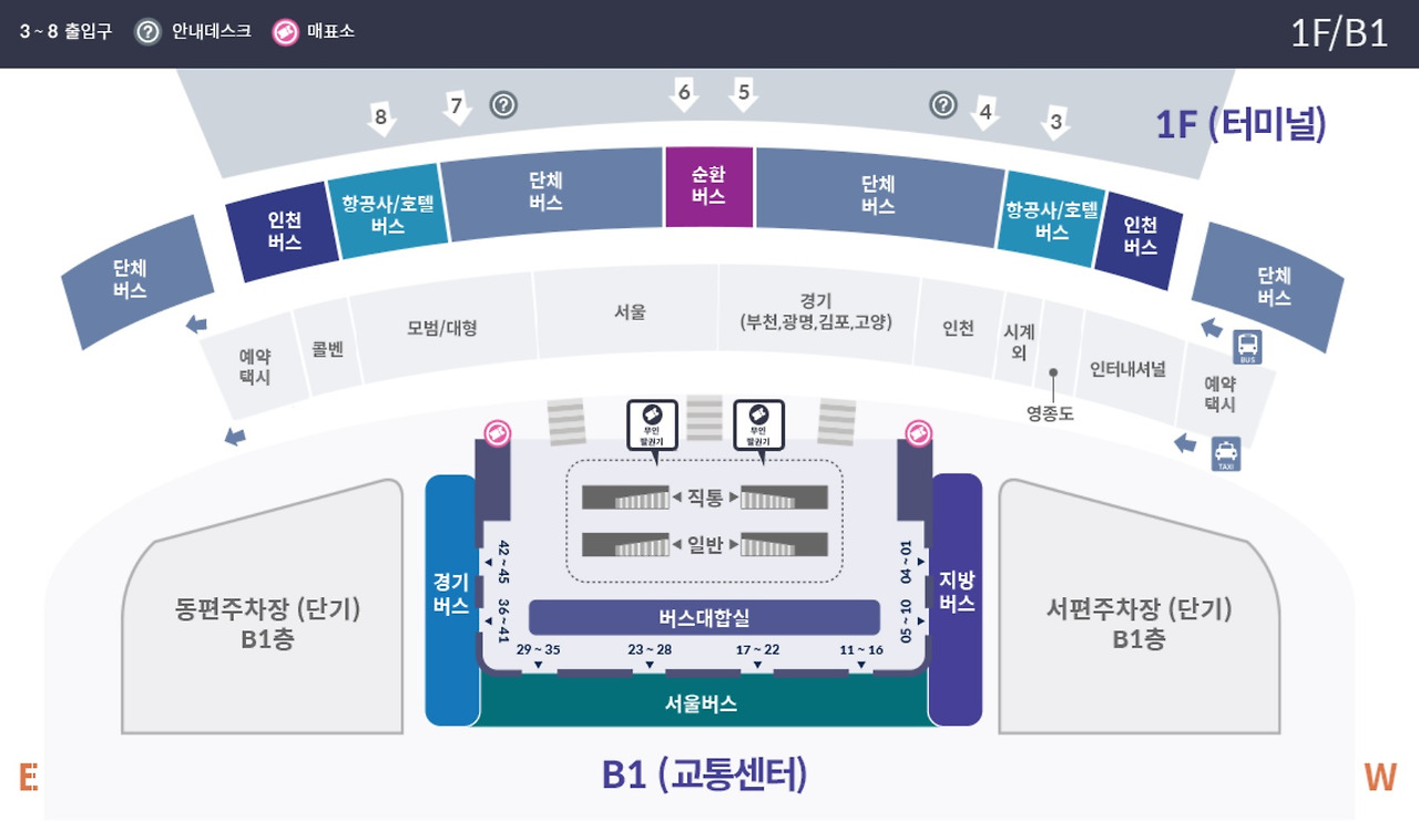 제1여객터미널에서는 1층 내부 및 외부의 버스 매표소에서 버스 탑승 안내와 승차권 구입이 가능합니다. 제2여객터미널에서는 교통센터 지하 1층의 버스터미널에서 버스 관련 안내를 받을 수 있습니다. 저는 공항에 도착하기 전에 이 정보를 미리 확인하고, 도착 후 곧바로 필요한 곳으로 이동할 수 있었던 경험이 있습니다. 이 작은 준비가 공항에서의 시간을 절약해 주었죠.