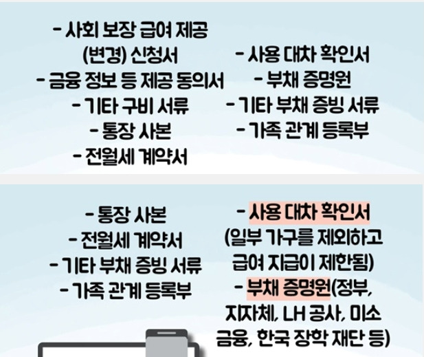 - 사회보장급여 제공 신청서 (신청인 신분증 지참)