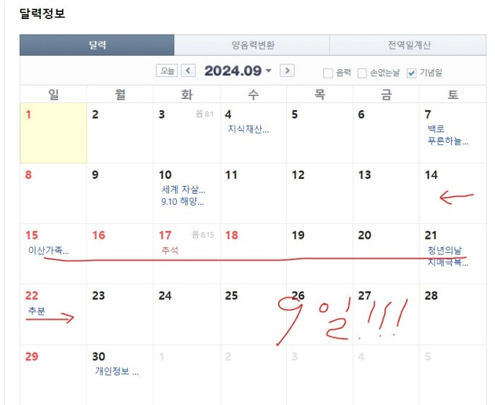 올해 추석은 9월 17일 화요일로, 9월 14일 토요일부터 9월 18일 수요일까지 총 5일입니다. 목, 금 이틀만 더 연차를 쓰거나 휴가를 쓴다면 최대 9일 동안 쉴 수 있는 황금연휴가 될 수 있습니다. 아무래도 추석 연휴가 긴 만큼 이번 기차표 예매는 조금 덜 치열하지 않을까 생각해 봅니다.