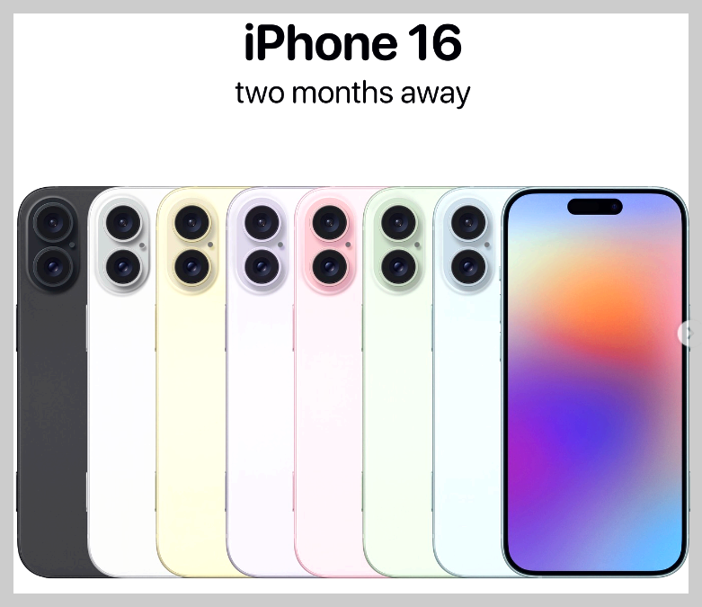 아이폰 16의 색상은 블랙, 화이트, 블루, 그린, 핑크, 옐로우, 퍼플로 총 7가지 색상이 제공될 예정입니다.