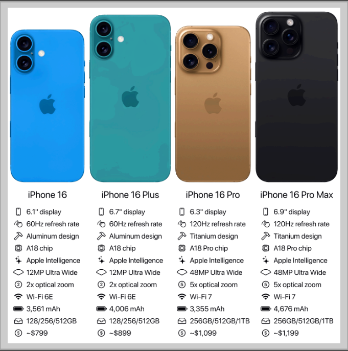 아이폰 16 시리즈는 총 4가지 모델로 출시될 예정입니다:
